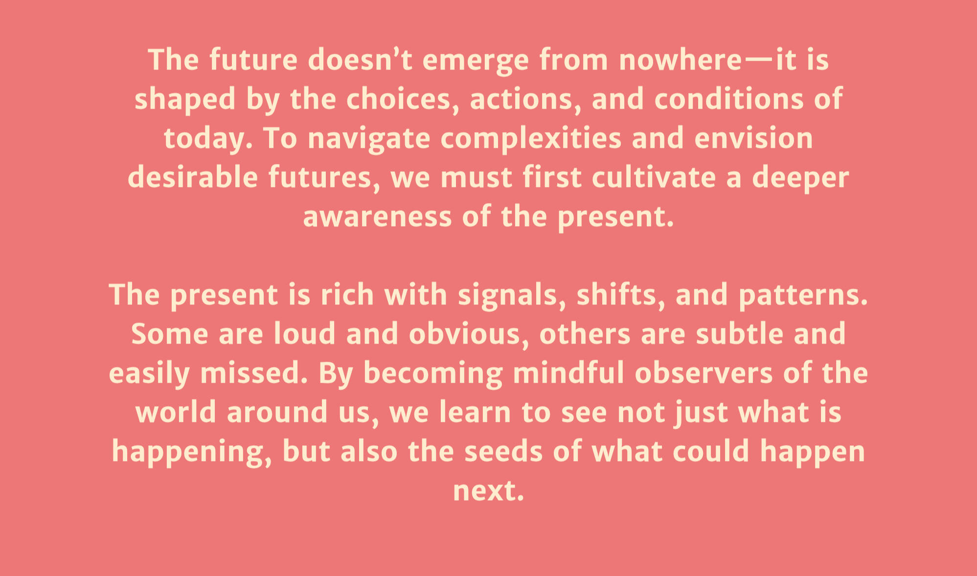 A calm space for exploring how we think about the future, and how we can do it more mindfully, ethically, and creatively. The episodes are built in a way that you can pause and reflect when you need to do so. Find the podcast on Spotify, Apple podcasts and where-ever you listen to yours!